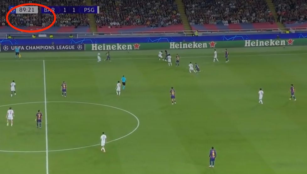 Trong 50 phút sau đó, không đội nào có thể ghi bàn một lần nữa. Vào phút thứ 89, Barcelona đã đưa bóng vào sân sau. Tại thời điểm này, Paris bắt đầu nhấn cho toàn bộ trò chơi. Trong 89 phút và 20 giây, Paris đã chặn thành công bóng. Các cầu thủ Paris không vội vàng chiến đấu, họ đã chuyền bóng trở lại.