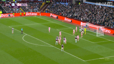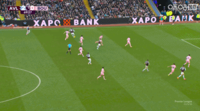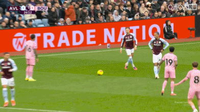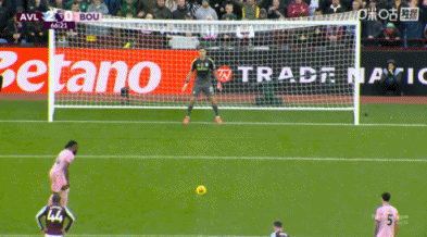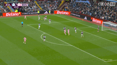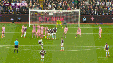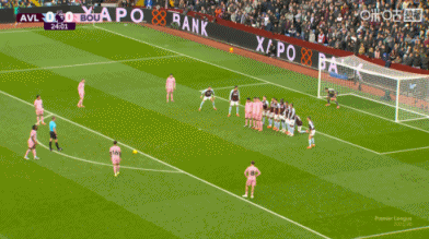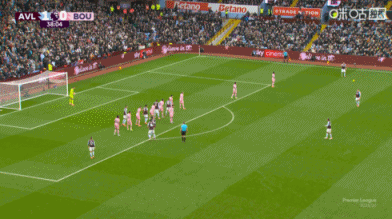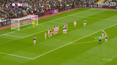 Ở phút thứ 27, cú đá phạt trực tiếp của Buendia ở đầu vòng cung đã trực tiếp ghi bàn thắng. Thủ môn không có phản ứng. Aston Villa 1-0 Bournemouth. ↓