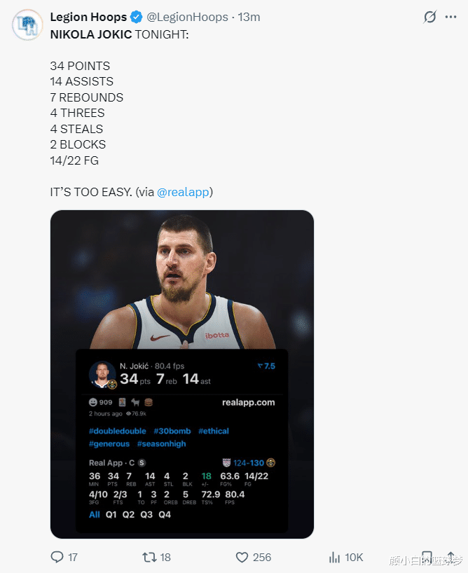 Nhấn 34+14 và lập kỷ lục khác! +18 của Jokic trên sân quá khó giải thích. Phương tiện: Hướng tới MVP thứ 4
